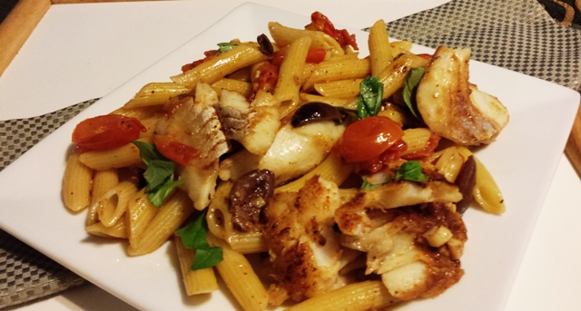 The translation of pasta e pesce is pasta and fish. Yes I had to go all Italian on you. I love the language and particularly the food. It’s simple, good and soul satisfying. I am inspired by Italian cooking and this dish is from that inspiration. Pasta is my favorite comfort food. It makes me feel calm, cozy and cured from the stresses of the day – if just for a moment. When I make this dish, all is well in my world.