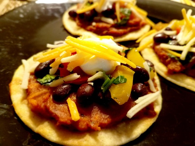 Up close and personal view of Sweet Potato and Ancho Chile Tostadas with Black Bean Salsa. ¡Delicioso!