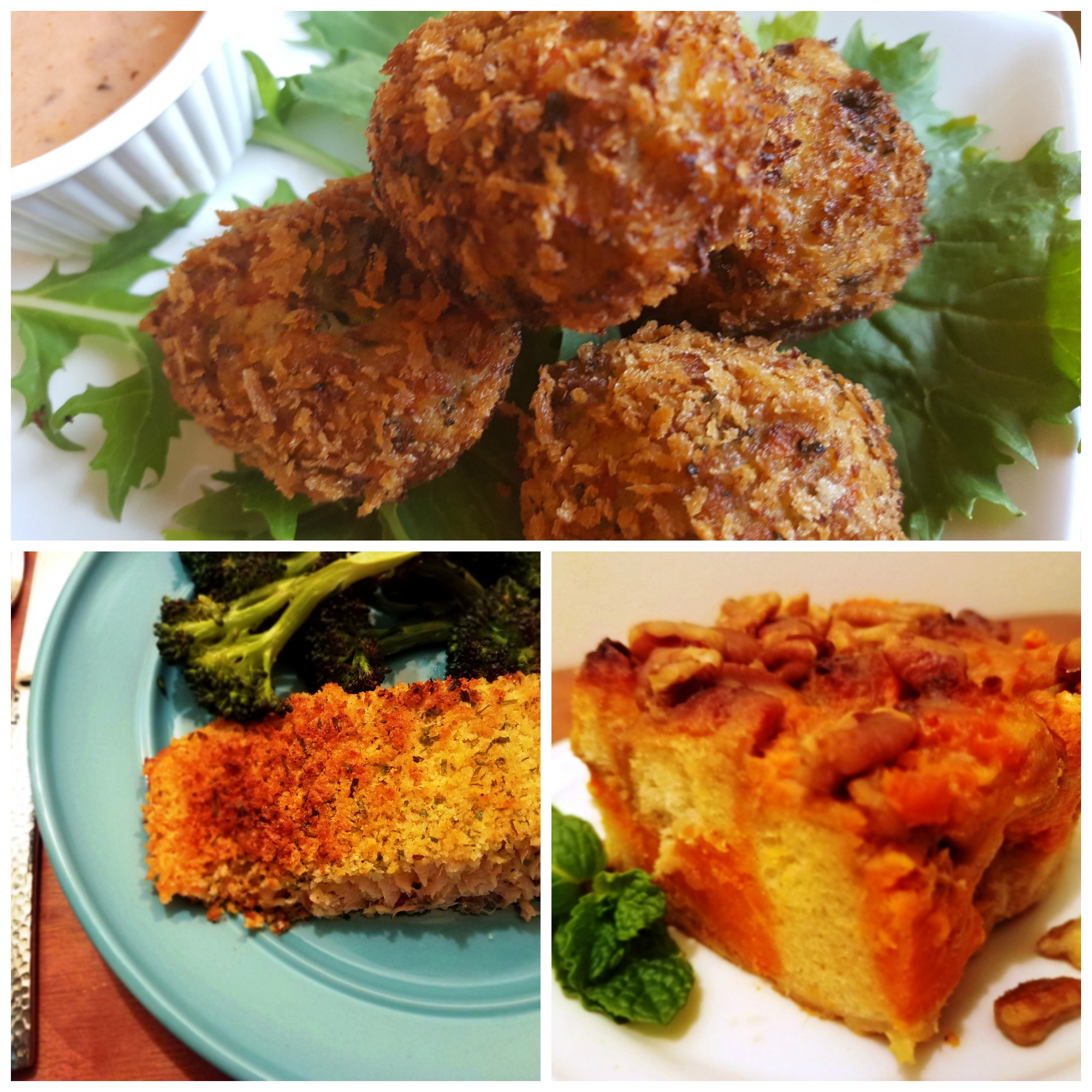 Salad featuring your favorite garden greens. Be adventurous and add some thinly sliced Asian pears or Honeycrisp apples brushed with a little lemon juice, walnuts, cranberries and a little roughly chopped fresh mint. Toss the salad with a delicate champagne vinaigrette you can purchase from most grocery stores or specialty markets.