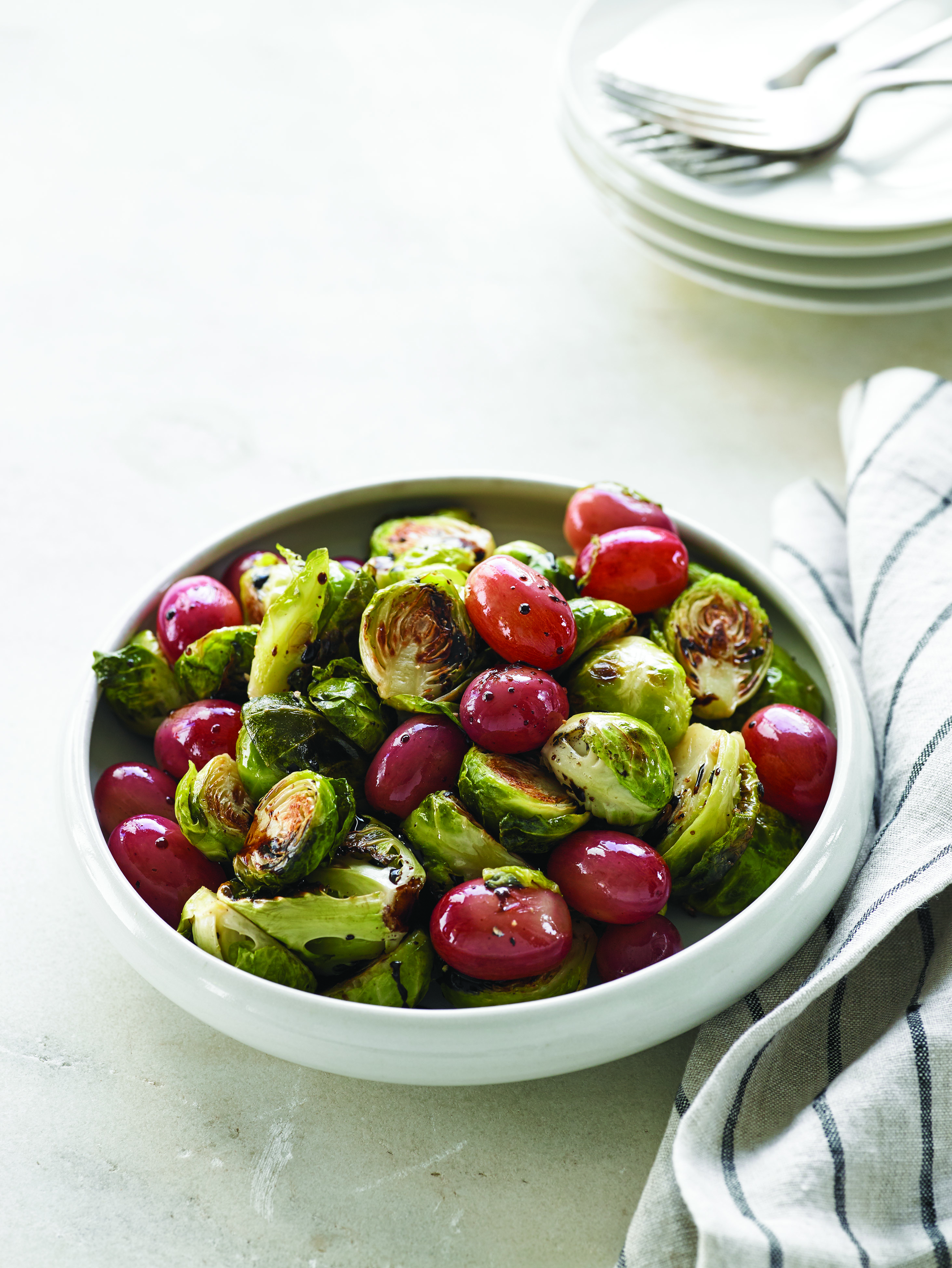 Roasted Brussels Sprouts with Grapes and Balsamic Glaze. Photo credit: Family Features