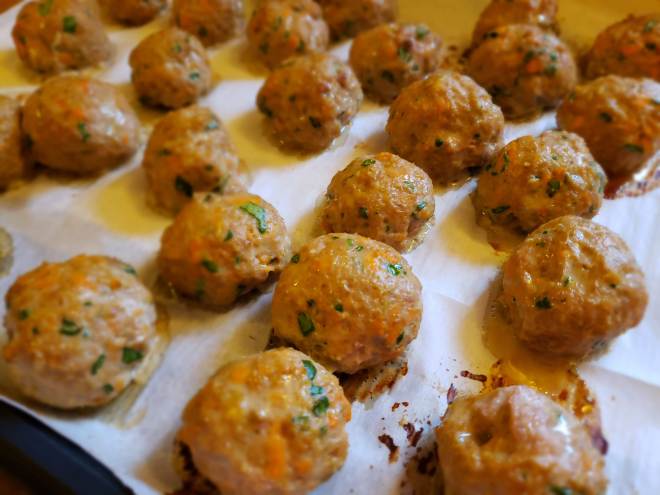 - Form into 28 to 30 balls and place on to a parchment lined baking sheet.