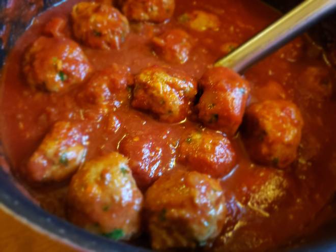 Moist and tasty turkey meatballs in a delicious sauce.