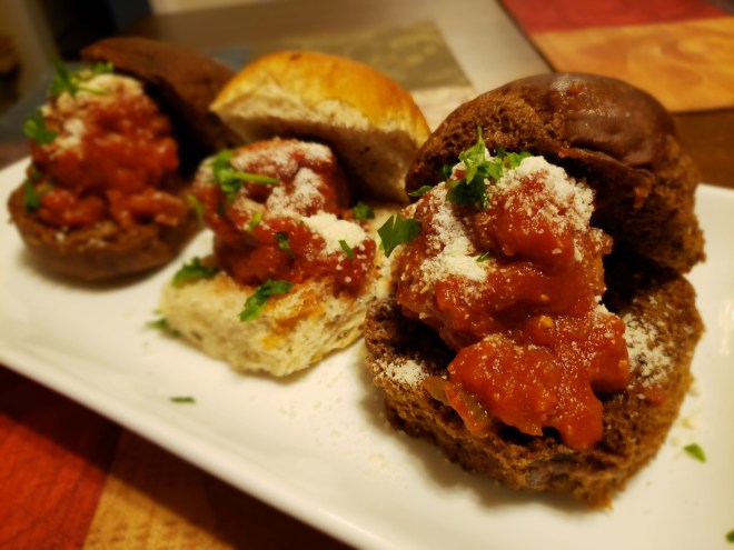 - Serve as appetizer or as sliders. Garnish with grated Parmesan and fresh chopped parsley.