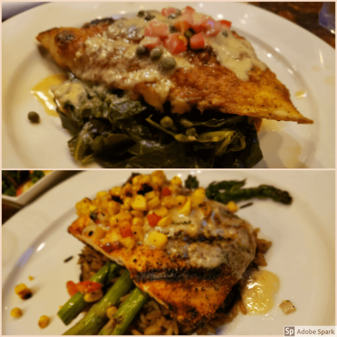 This joint was dope. Yup I said that. It’s a restaurant, book store and community gathering place. It had a real cool vibe and we enjoyed some real cool food. I had the grilled Catfish served on top of a corn cake with collard greens topped with a lovely lemon butter sauce, finished with capers and chopped tomatoes. It was an OMG moment for my mouth. My sister enjoyed the Blackened Salmon which was served with wild rice, asparagus, roasted corn salsa, tomato, shallots, lemon butter sauce.